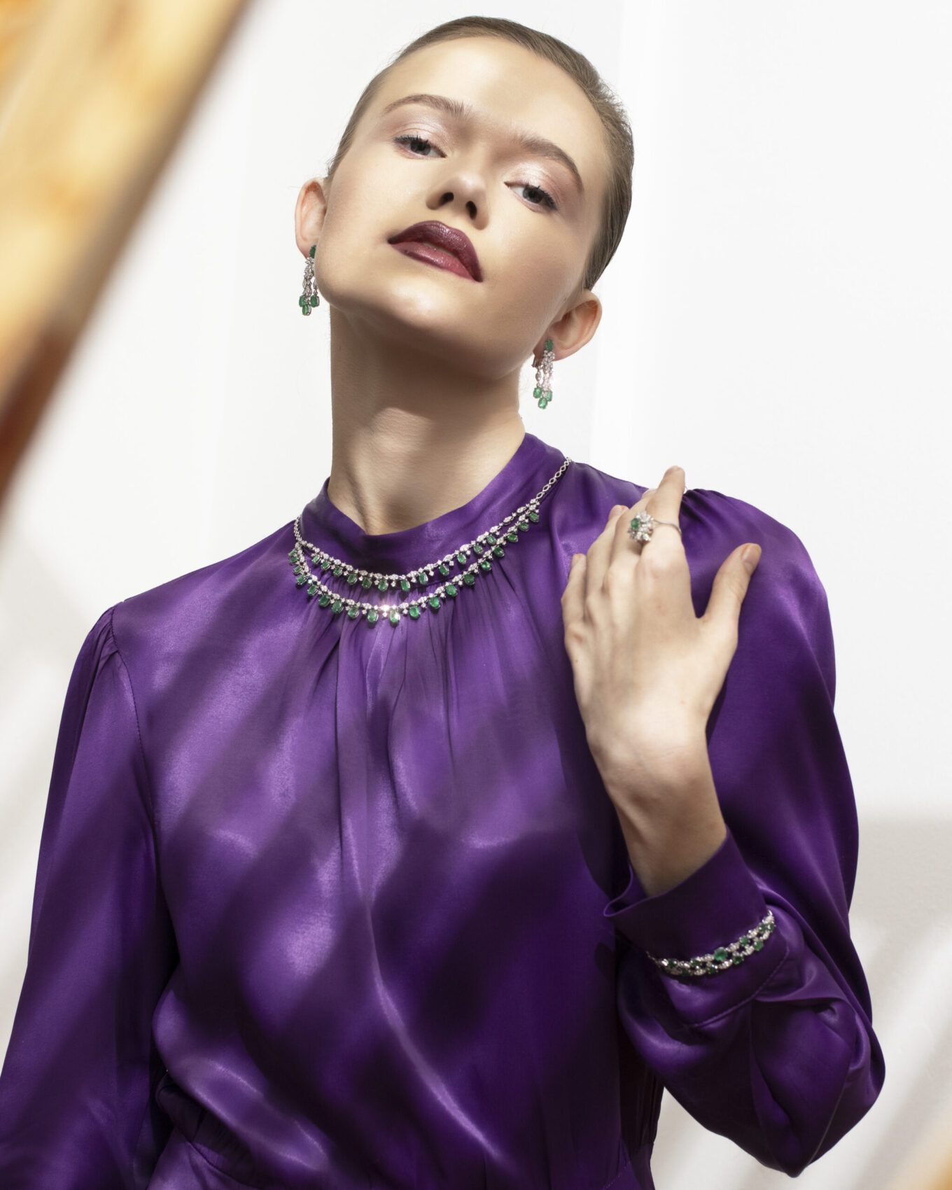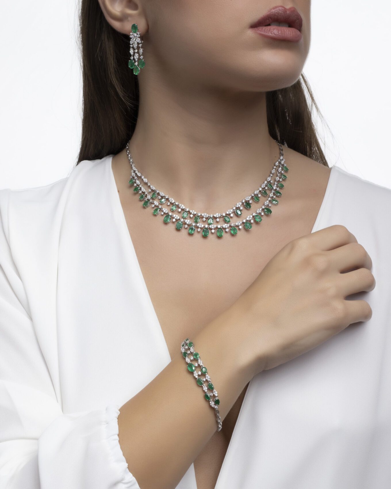 Eternal Bracelet, 18kt white gold, set with brilliant-cut white diamond and oval-cut emerald Gold Weight: 10.35 gDiamond: 1.275 ctEmerald: 3.485 ct